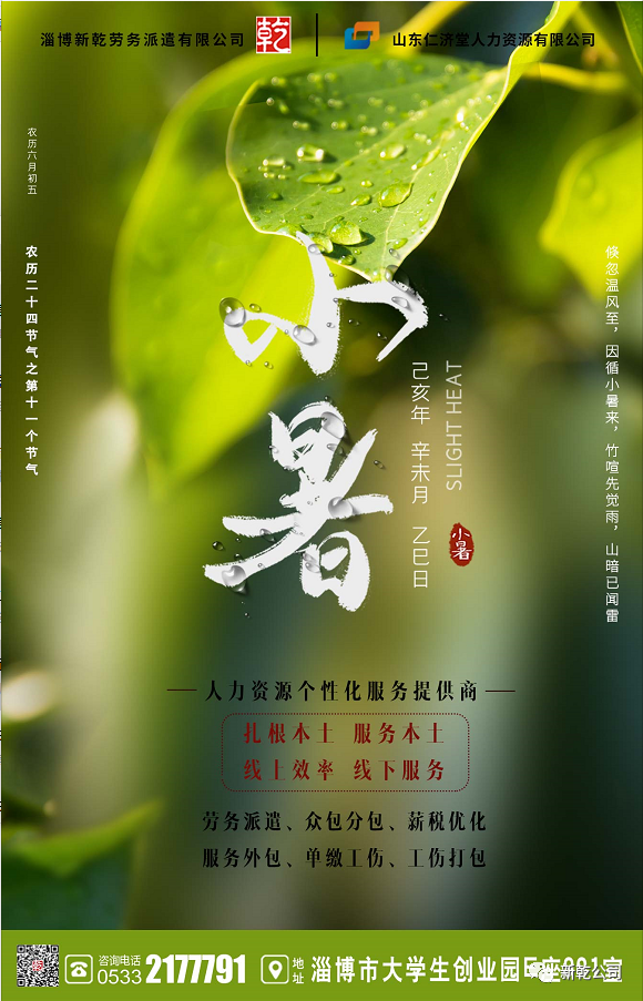 山东新乾人力资源管理有限公司 下设 济南、青岛、淄博、菏泽 各地分公司 现诚征各地市加盟合作伙伴 客服电话:13205330772, 0533-2177791 加盟电话:18653301615, 0533-2177791 公司地址:山东省淄博市张店区人民西路164号中单元608室
